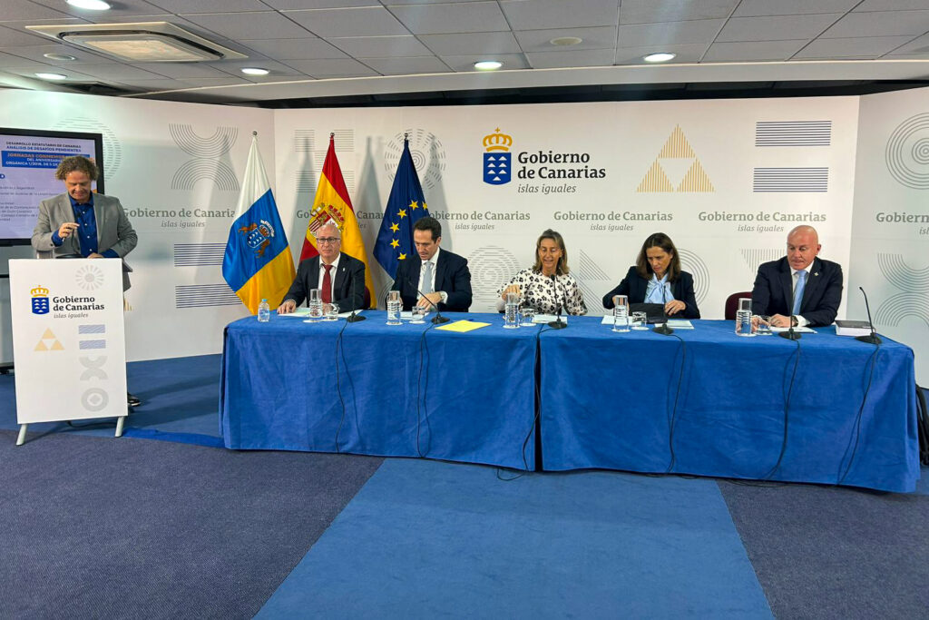 La primera mesa, ‘Territorio y Administraciones Públicas’, moderada por Carmen Nery Cordobés, secretaria general técnica de la Consejería, contó con la intervención principal de Francisco Villar Rojas, catedrático de Derecho Administrativo de la ULL, Participaron también Ángel Montesdeoca García, Elena Zárate Altamirano, Ángel Lobo Rodrigo, y Fernando Ríos Rull, quienes profundizaron en los retos competenciales y normativos derivados del modelo territorial canario.